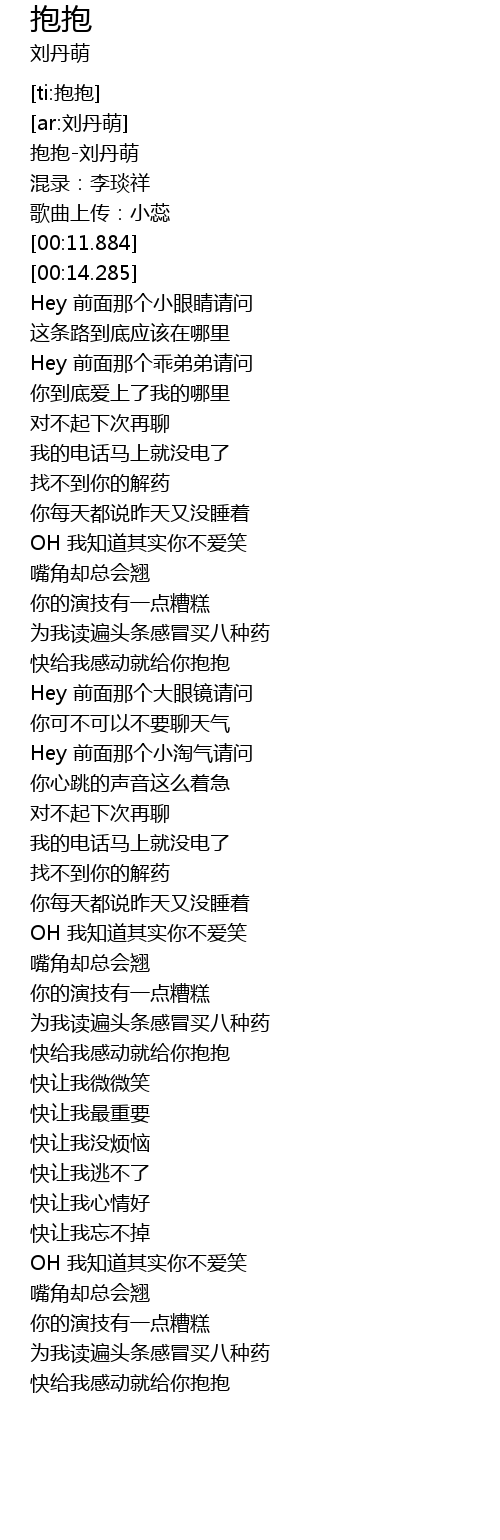 | [02:12.158] | 快给我感动就给你抱抱 |