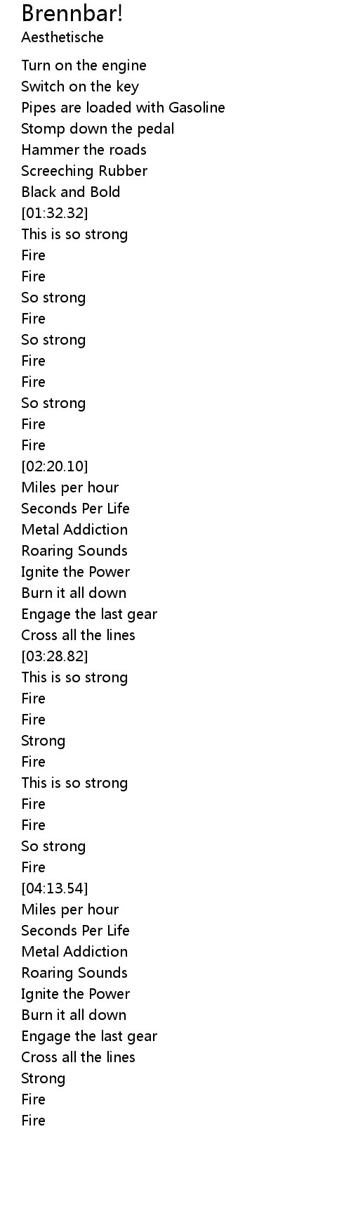 | [01:02.12] | Pipes are loaded with Gasoline |