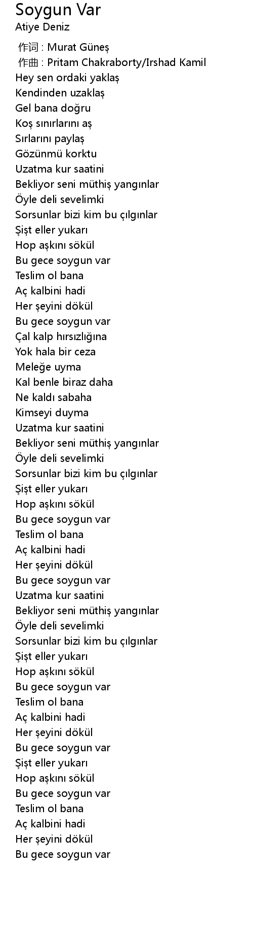 | Song | Soygun Var |