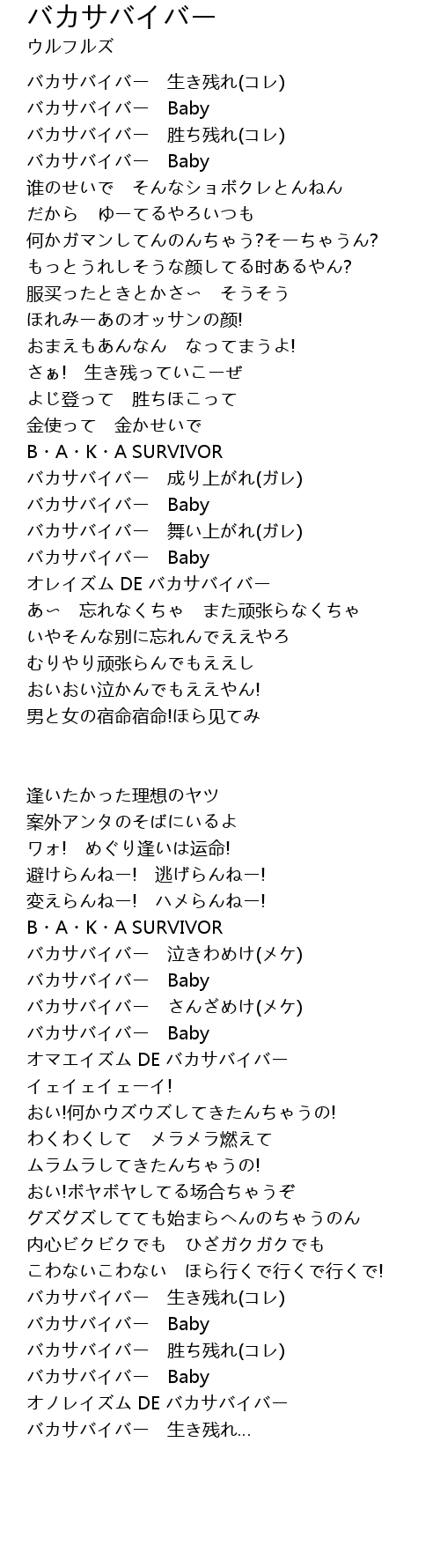 バカサバイバー  Lyrics