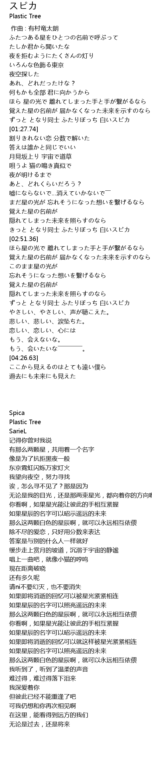 | [03:50.67] | ずっと となり同士 ふたりぼっち 白いスピカ |