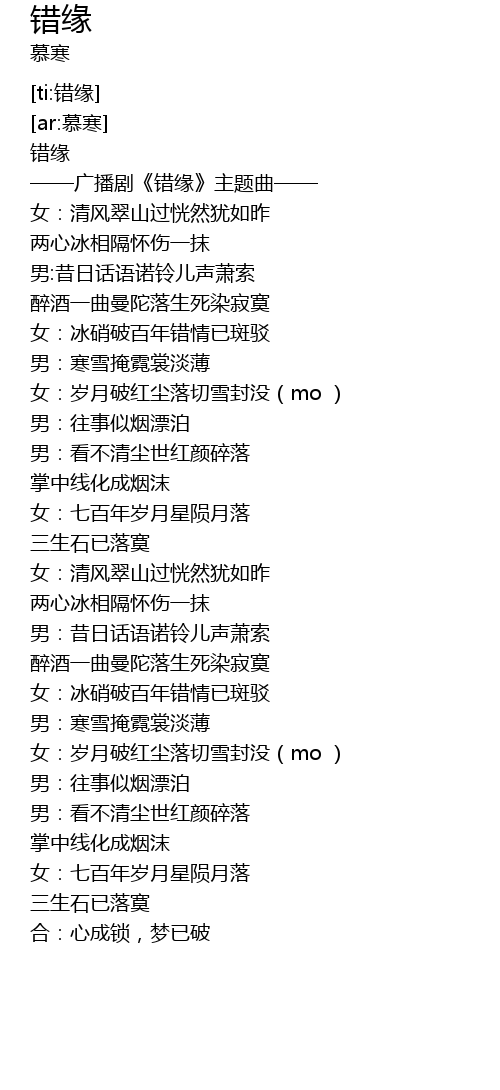 | [00:05.883] | ——广播剧《错缘》主题曲—— |