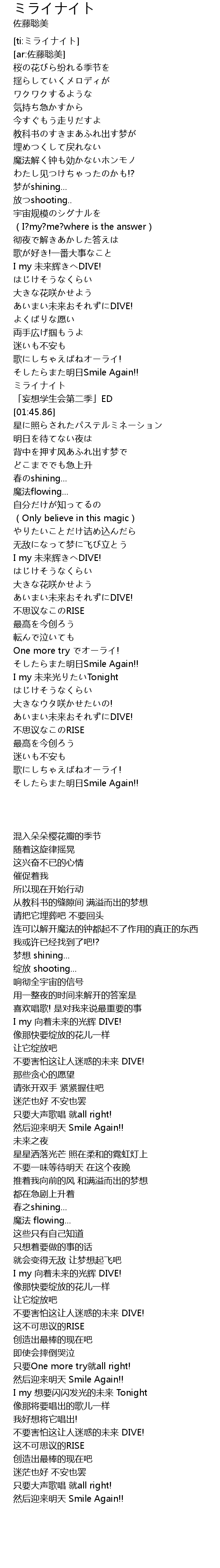 | [03:09.714] | I my 未来光りたいTonight |