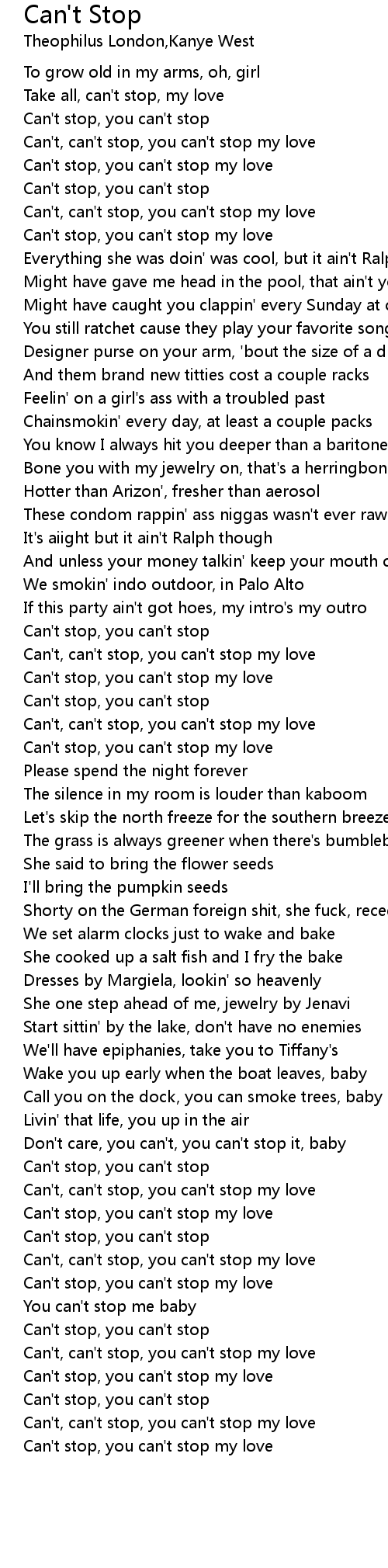 Can't stop, you can't stop |