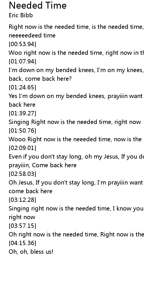 Oh right now is the needed time, Right now is the needed time, |