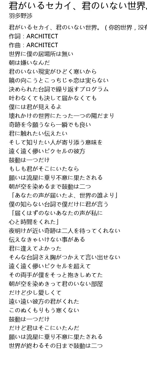 | [00:08.320] | 作詞:ARCHITECT |