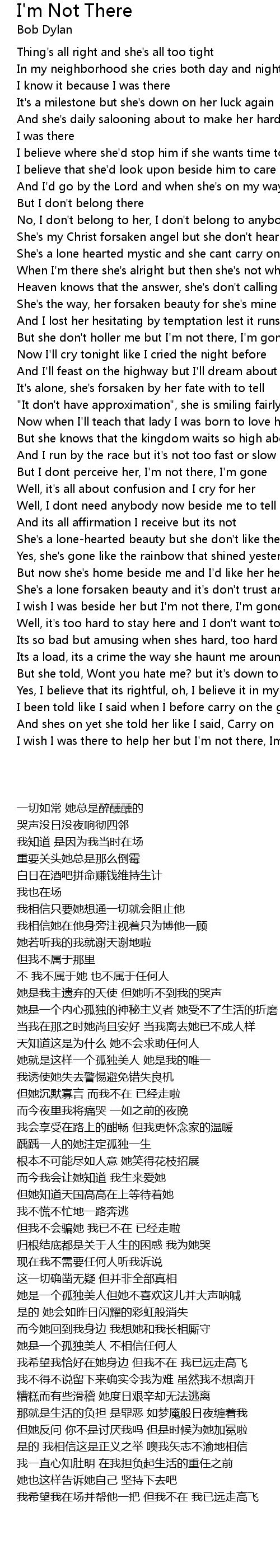 But I dont perceive her, I'm not there, I'm gone |