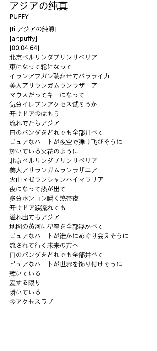 | [02:13.41] | 北京ベルリンダブリンリベリア |