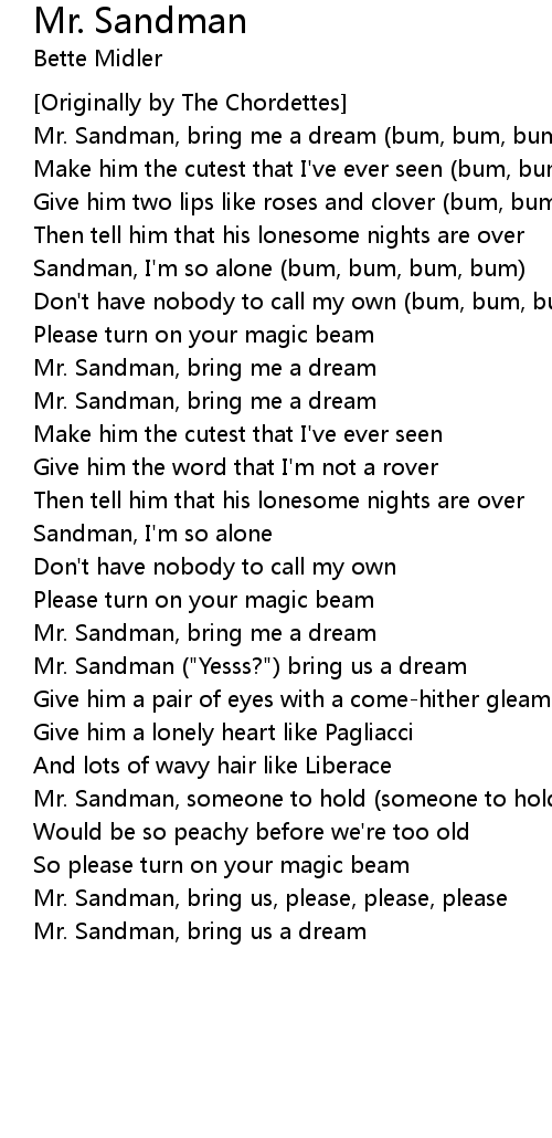 Mr. Sandman, bring me a dream (bum, bum, bum, bum) |