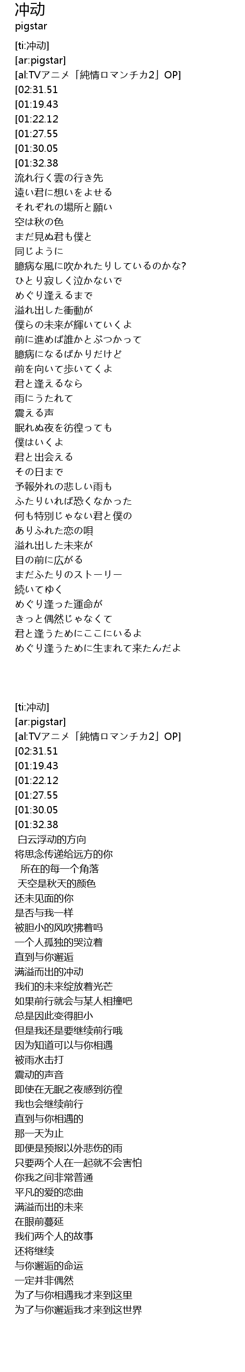 | [00:00.80][02:31.51] | yì chū chōng dòng |