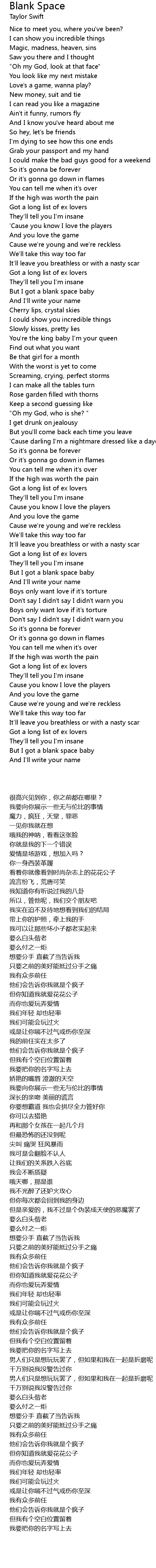 But I got a blank space baby |