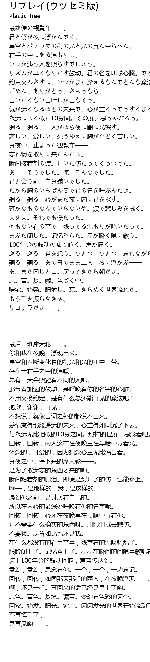 | [00:52.300] | ごめん、ありがとう、さようなら、 |