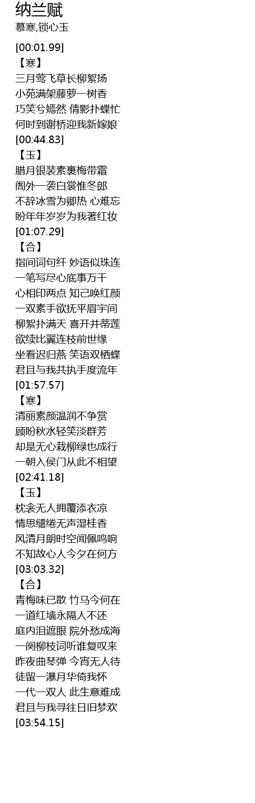 | [01:33.72] | 柳絮扑满天 喜开并蒂莲 |