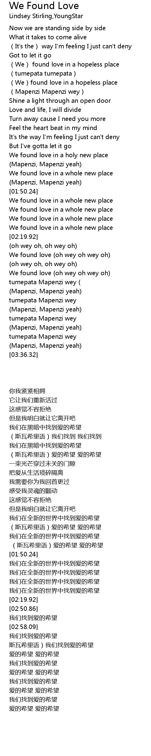 | [02:53.00] | We found love (oh wey oh wey oh) |