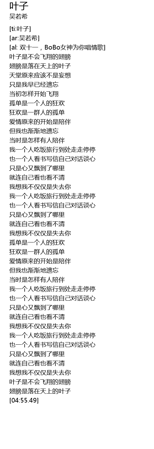 | [04:45.86] | 翅膀是落在天上的叶子 |