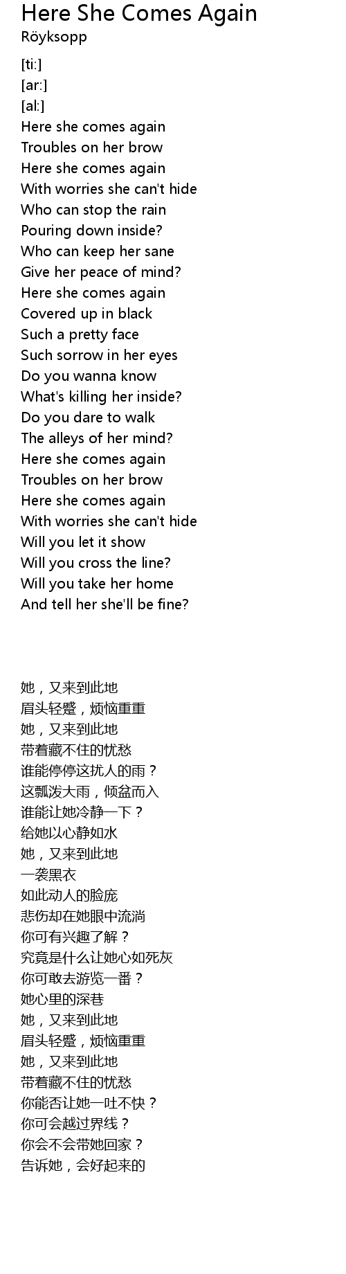 Here she comes again |