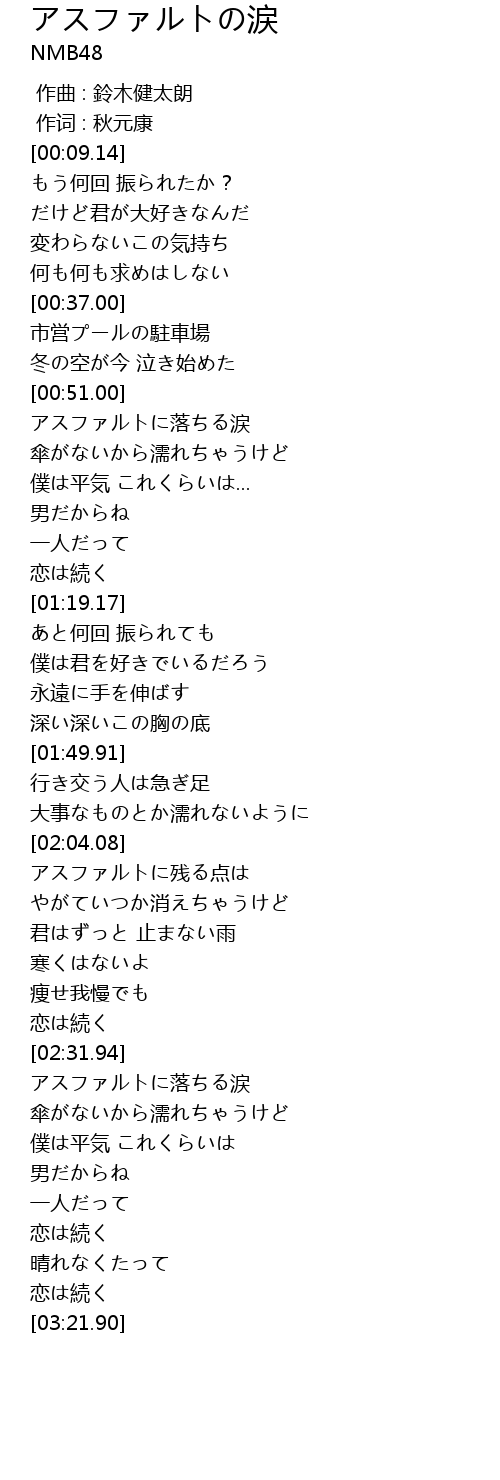 | [00:00.00] | 作曲 : 鈴木健太朗 |