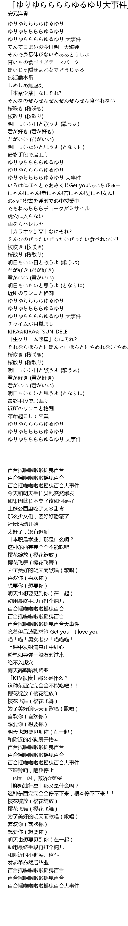| [02:30.180] | ゆりゆららららゆるゆり 大事件 |