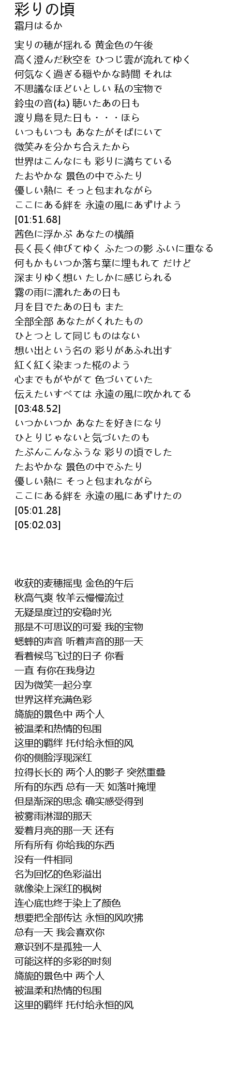 | [04:26.62] | たぶんこんなふうな 彩りの頃でした |