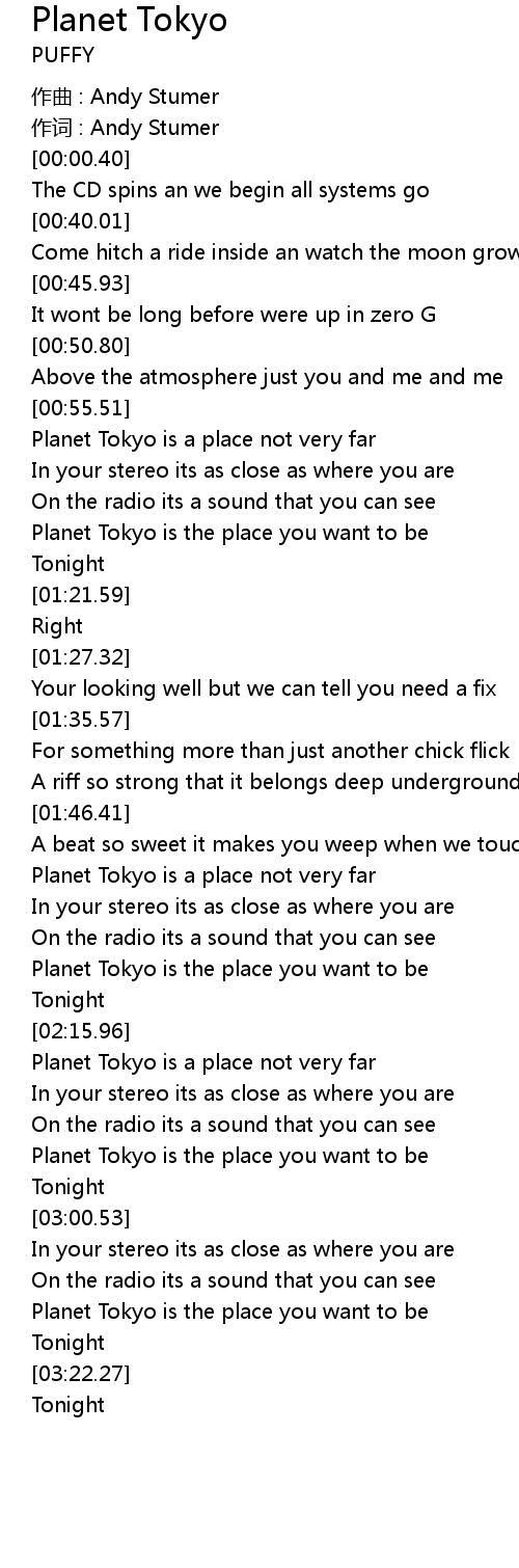 | [02:51.49] | Planet Tokyo is the place you want to be |