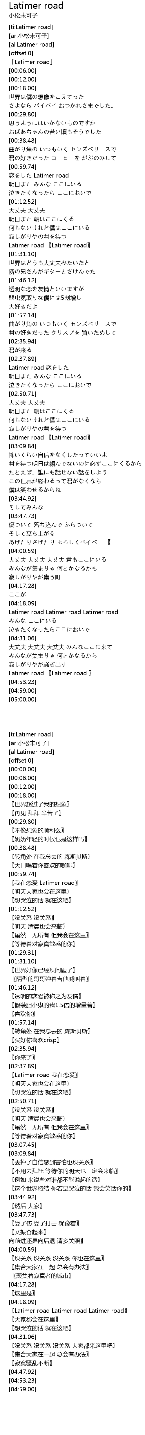 | [00:00.00] | 「Latimer road」 |