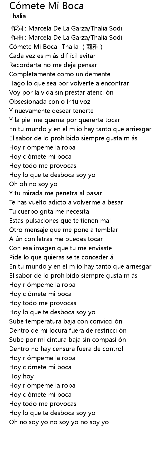 | [00:00.00] | Co mete Mi Boca Thalia li ya |