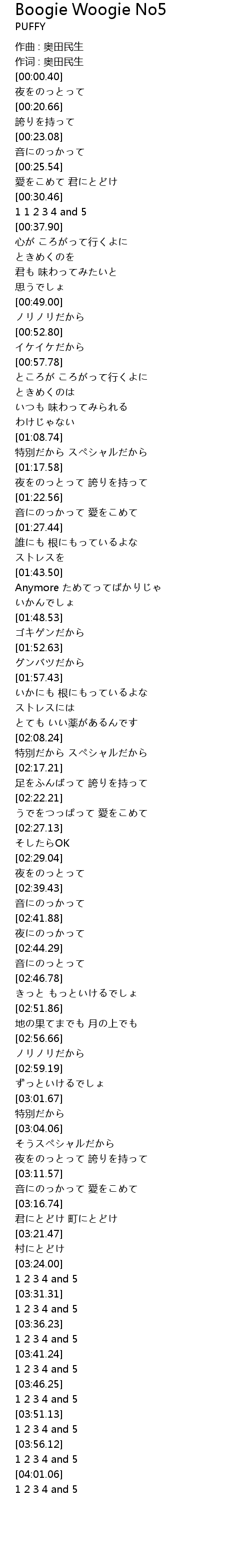 | [03:58.22] | 1 2 3 4 and 5 |