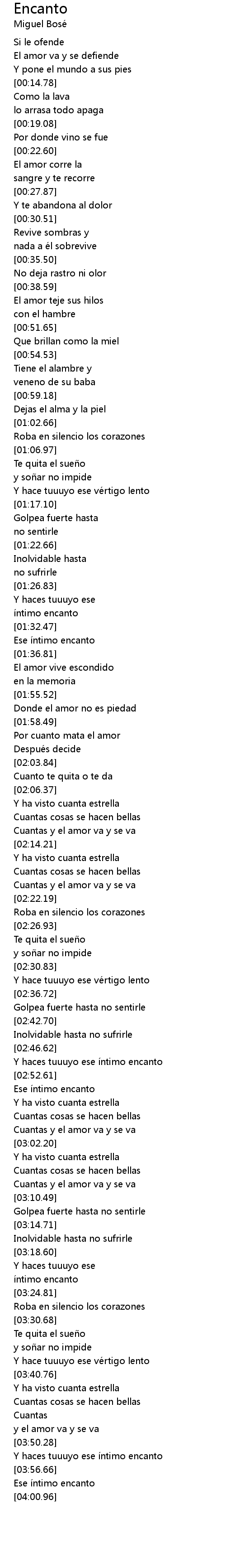| [03:51.51] | Y haces tuuuyo ese íntimo encanto |