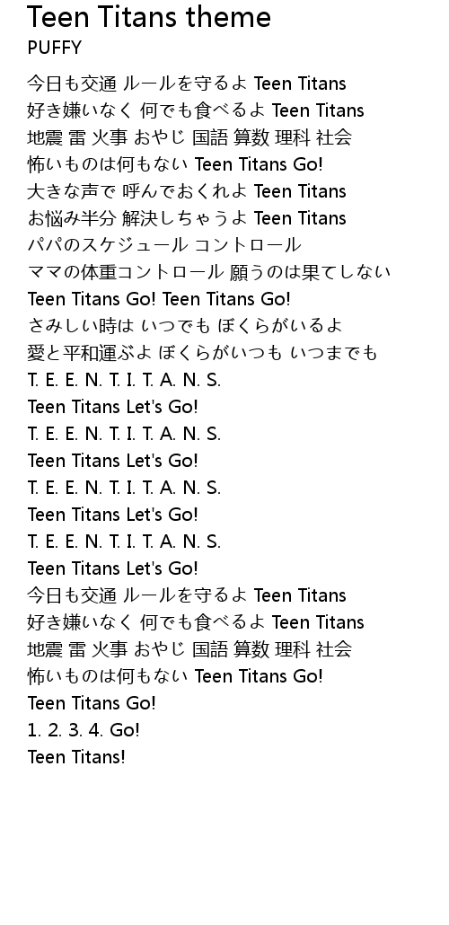 | 大きな声で 呼んでおくれよ Teen Titans | |