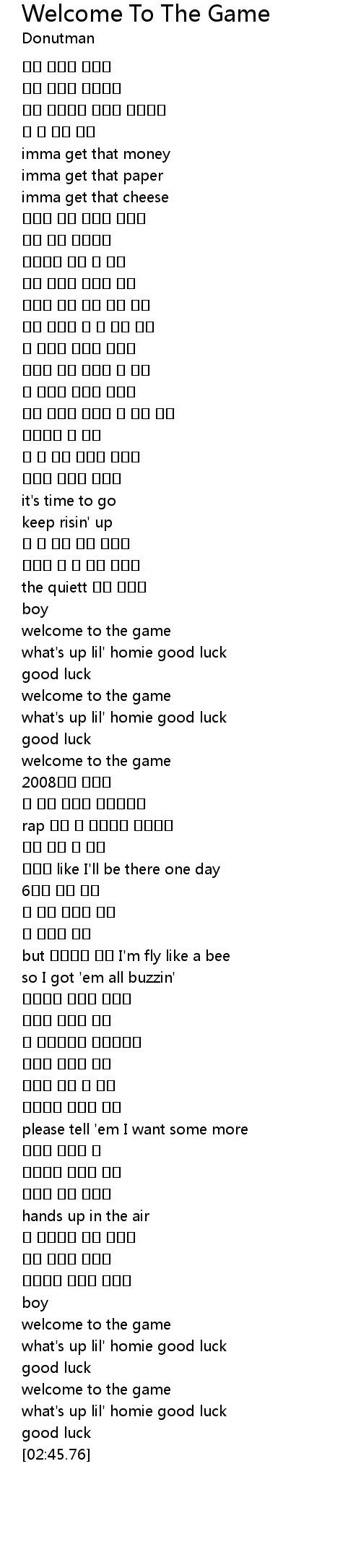 | [02:28.75] | welcome to the game |