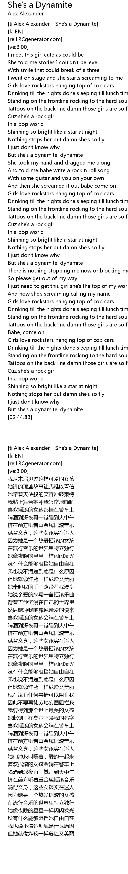 [ti:Alex Alexander - She's a Dynamite] |
