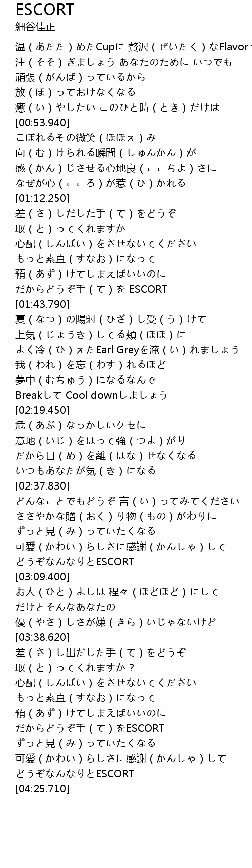 | [01:36.270] | だからどうぞ手(て)を ESCORT |