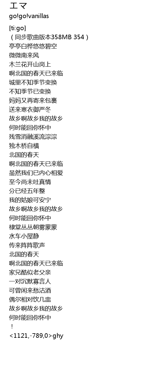 | [01:11.733] | 故乡啊故乡我的故乡 |