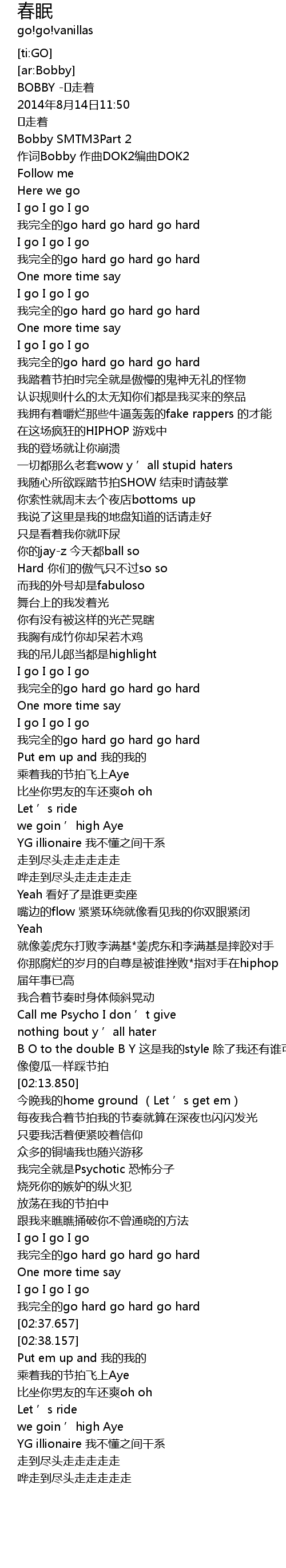 | [02:35.307] | 我完全的go hard go hard go hard |