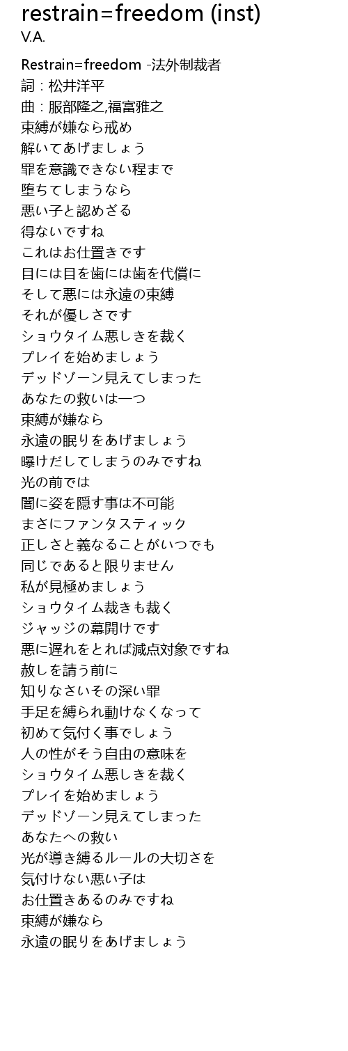 | [00:00.231] | Restrain=freedom -法外制裁者 |