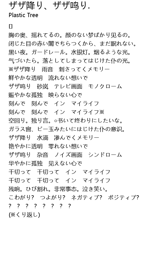 | Song | ザザ降り、ザザ鸣り. |