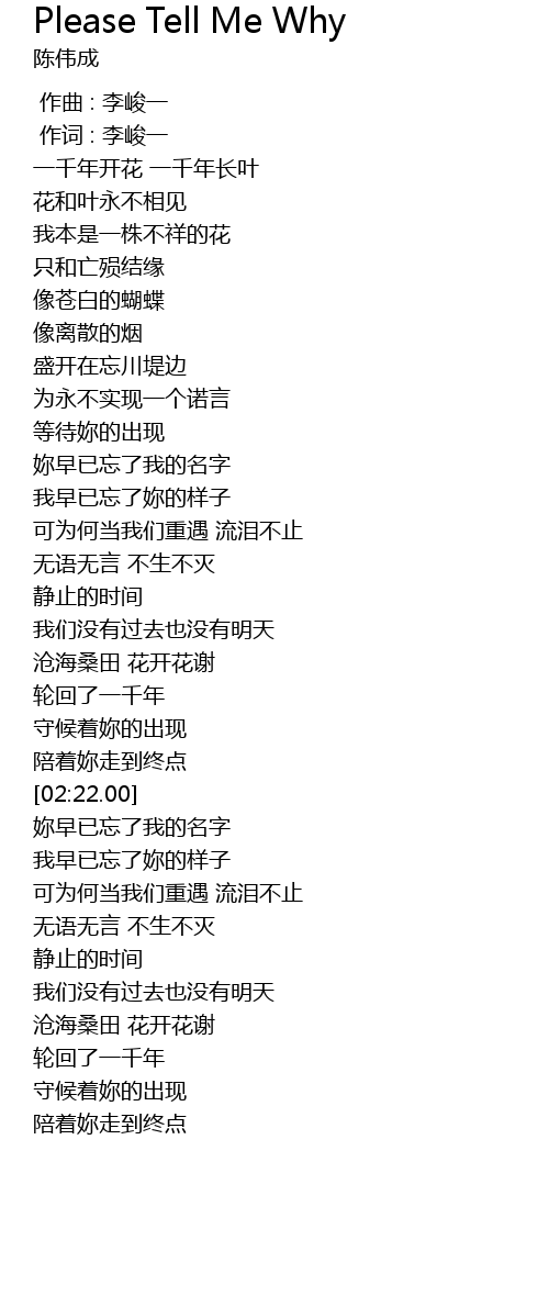 | [02:45.69] | 可为何当我们重遇 流泪不止 |