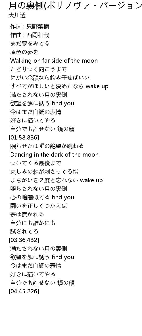 | [02:58.642] | 照らされない月の裏側 |