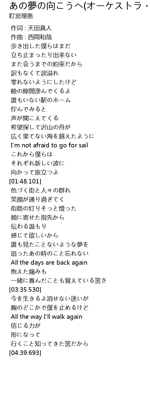| [04:30.000] | 行くこと知ってきた筈だから |