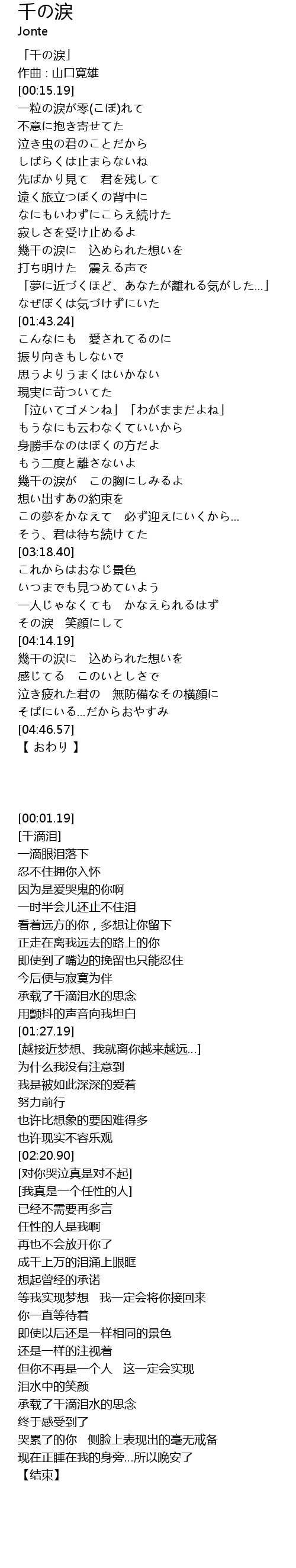 | [00:01.19] | 「千の涙」 |