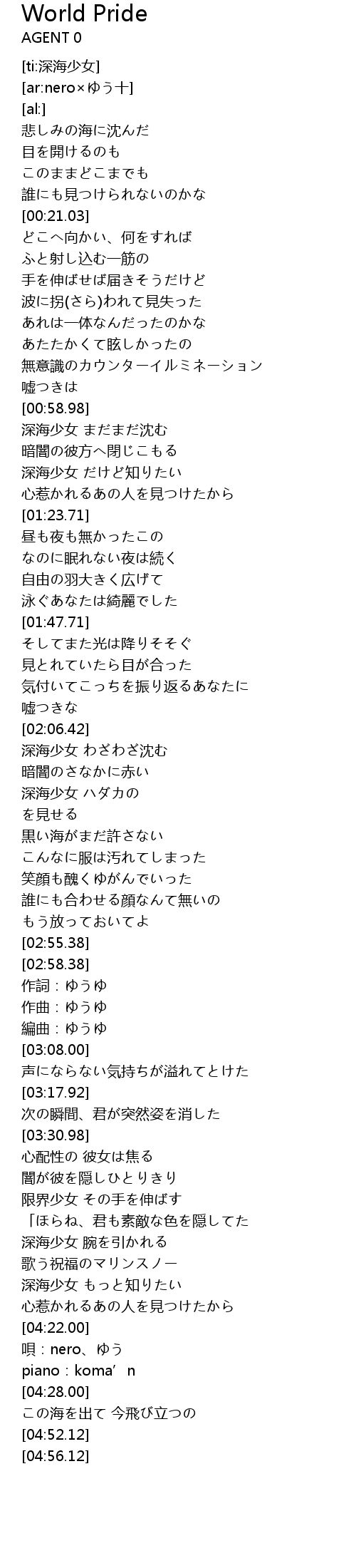 | [00:59.56] | 深海少女 まだまだ沈む |