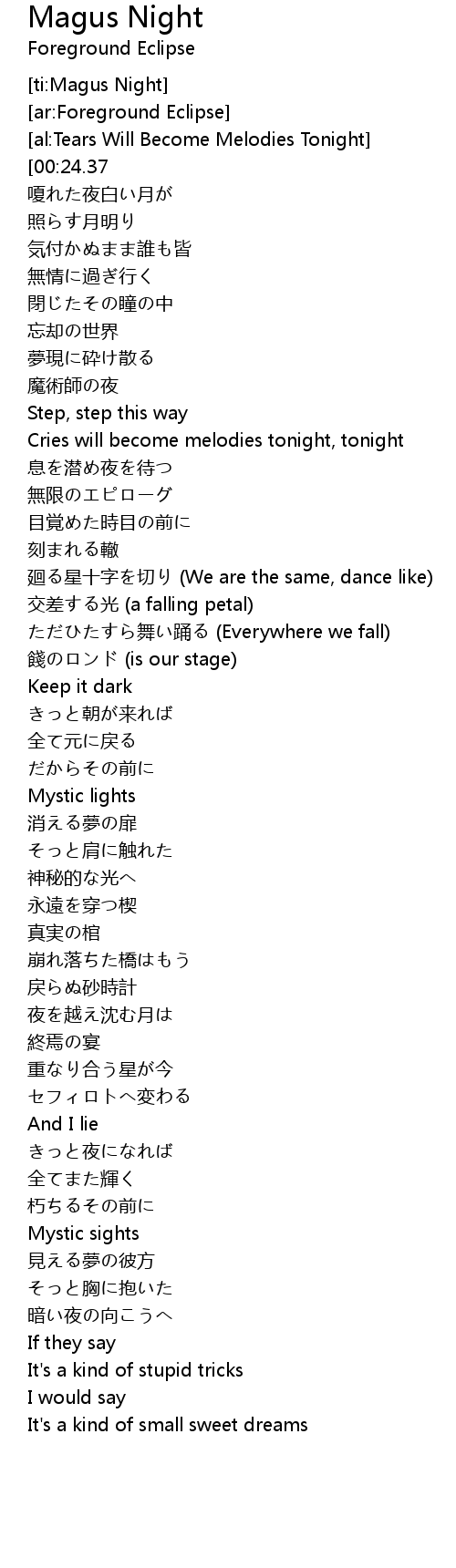 | [00:47.79] | Cries will become melodies tonight, tonight |
