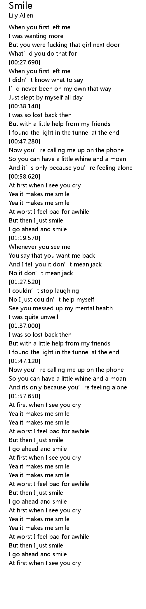 | [00:55.700] | And it’s only because you’re feeling alone |