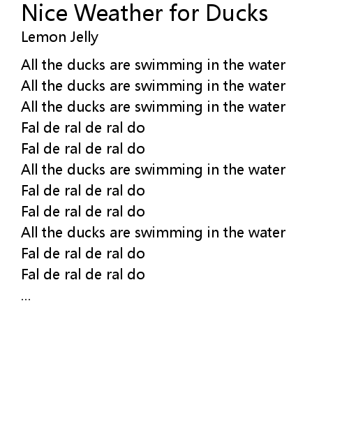 | Song | Nice Weather for Ducks |