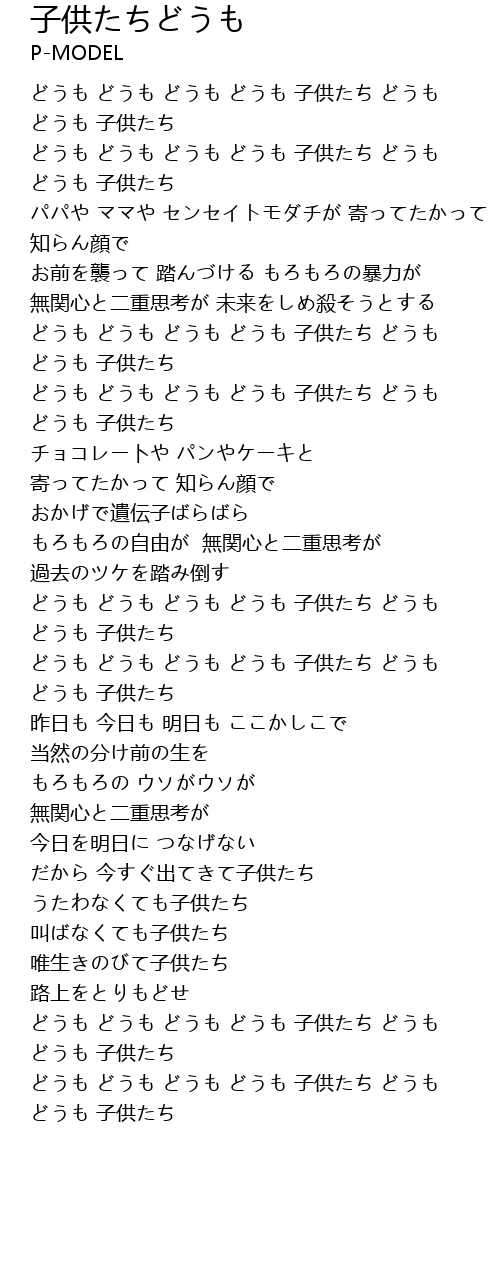 | [00:20.26] | どうも どうも どうも どうも 子供たち どうも どうも 子供たち |