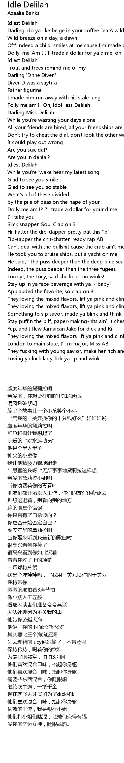 | [01:11.200] | Folly me am I Oh, Idolless Delilah |