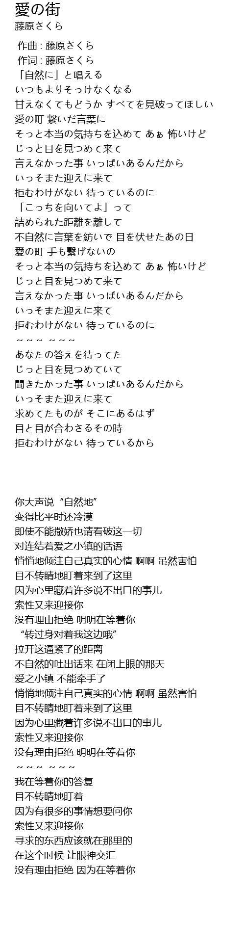 | [00:01.00] | 作词 : 藤原さくら |