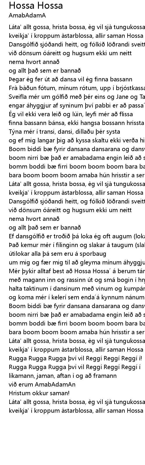 | Me r ykir alltaf best a Hossa Hossa a berum ta num | |