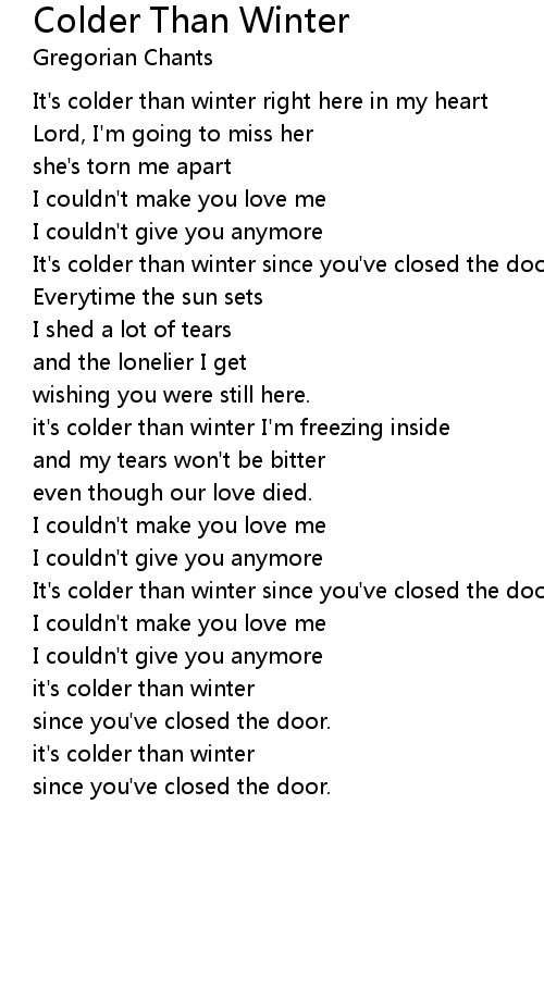 It's colder than winter right here in my heart |