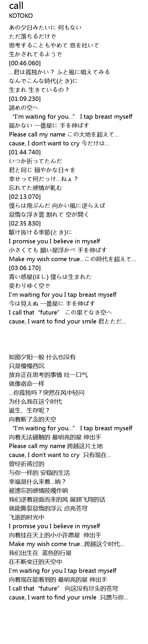 | [02:54.830] | Make my wish come true...この時代を超えて… |